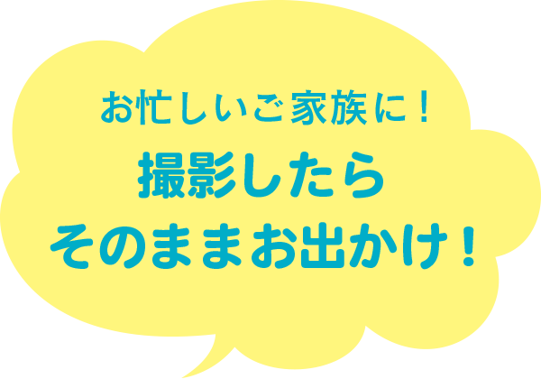 ご家族はお出かけ当日さえ集まれば、衣裳選びはママとお子様だけ、写真選びはママだけでもOK!
