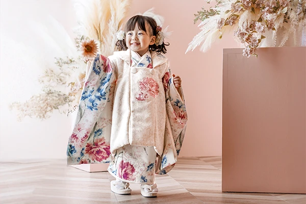 七五三の衣装を豊富にご用意しています。色柄の違いを見比べながら、当日の雰囲気をイメージできます。