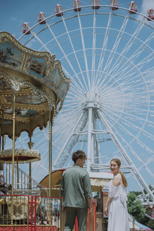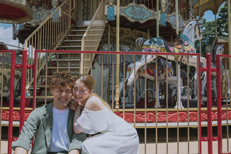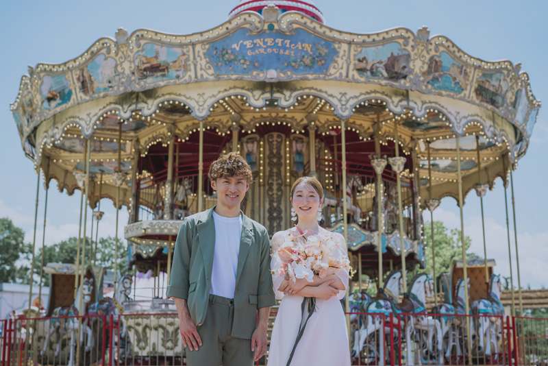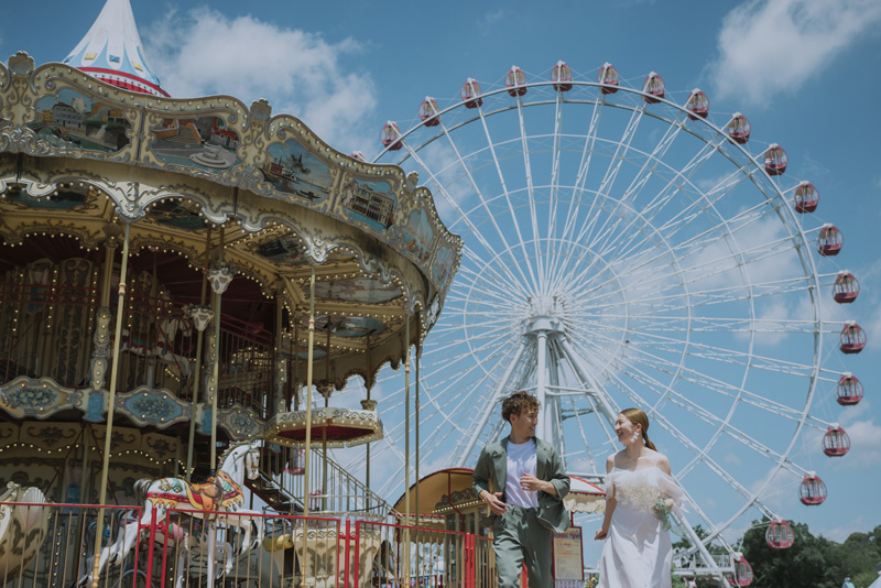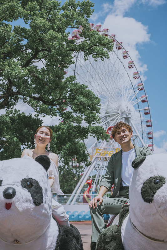 「日本モンキーパーク」は愛知県犬山市にある遊園地。自然に囲まれたロケーションで、観覧車やメリーゴーランドなどノスタルジックな雰囲気のお写真が撮影できる人気スポットです。遊びながらの撮影で、構えすぎないナチュラルな表情や動きのある写真撮影が可能となります。