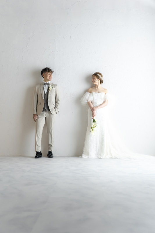 創寫舘のウェディングフォトは、洋装1着・和装1着・洋和装2着の基本3プランをもとに、おふたりの希望にあわせて自由にアレンジが可能です。衣装を増やしたり、データやアルバムなど必要な商品をセレクトしたり。欲しい分だけ、無駄なく。そんな柔軟さが、多くのカップルに選ばれています。