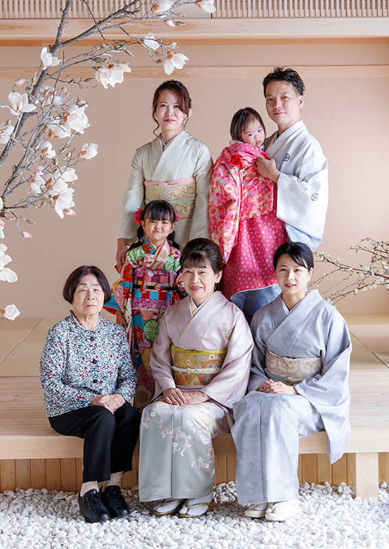 「お孫さん洋装・和装撮影時レンタル」「お孫さんヘアセット・メイク・和装お着付け」は、ご家族写真を撮影される方限定。なお、お衣裳は店舗によって異なり、別途ブランド料金がかかる衣裳もございます。