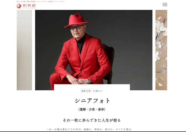 撮影対象60歳以上 シニアフォト(還暦・古希・喜寿) その一枚に歩んできた人生が宿る 一歩一歩積み重ねてきた年月。経験も、苦労も、喜びも、すべてを重ねた“今”を一枚の写真に刻もう。 撮影基本プラン 円 土日祝日+円 プラ … 続きを読む 還暦・古希・喜寿などシニア撮影プラン