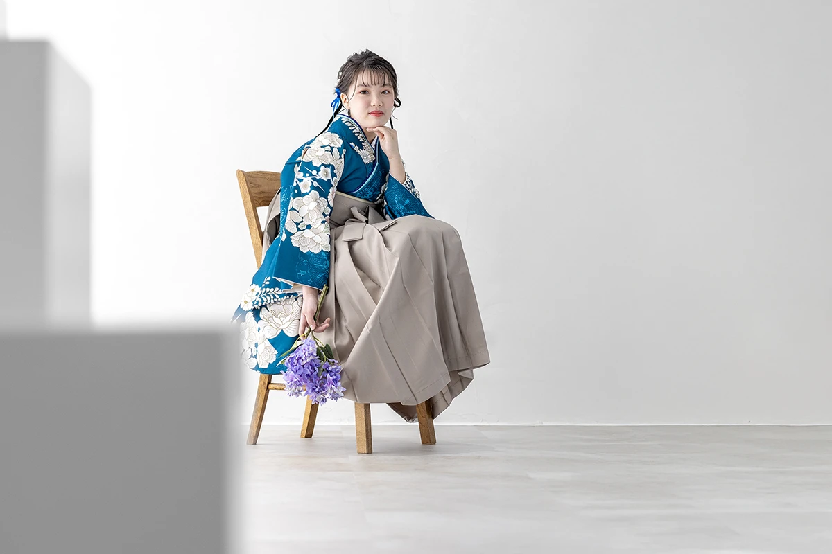 卒業袴は人生の門出にふさわしい心に残る装い。あどけなさと凛々しさを感じる表情を、一枚の写真に閉じ込めよう。
