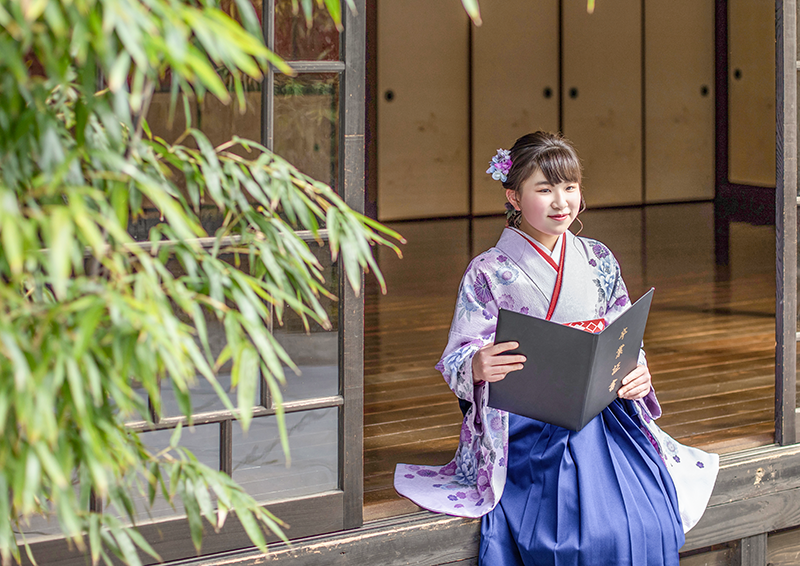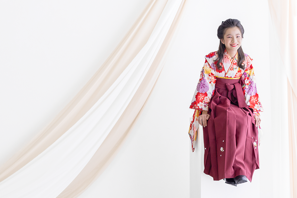 卒業袴は人生の門出にふさわしい心に残る装い。あどけなさと凛々しさを感じる表情を、一枚の写真に閉じ込めよう。