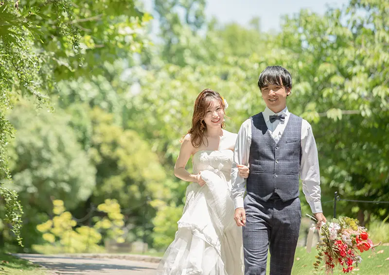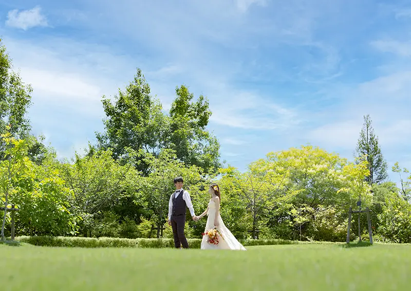 広大な敷地内はしっかりと整備され、春夏秋冬それぞれに美しい草花が楽しめる「安城産業文化公園デンパーク」で出張ロケーションフォト撮影が叶います。豊かな自然に包まれながら、人気スポットでの開放的な撮影を楽しみましょう。