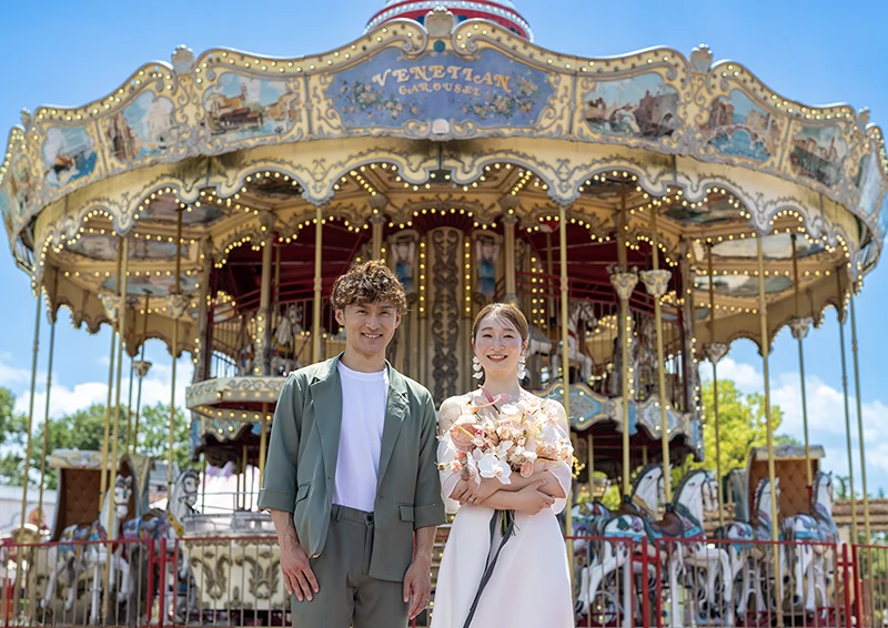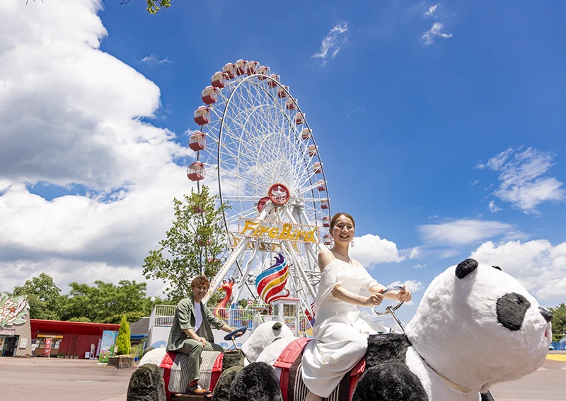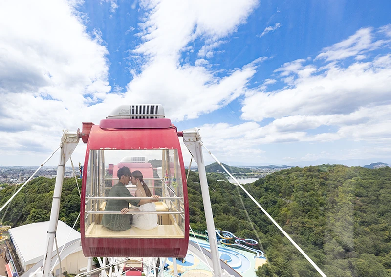 「日本モンキーパーク」は愛知県犬山市にある遊園地。自然に囲まれたロケーションで、観覧車やメリーゴーランドなどノスタルジックな雰囲気のお写真が撮影できる人気スポットです。