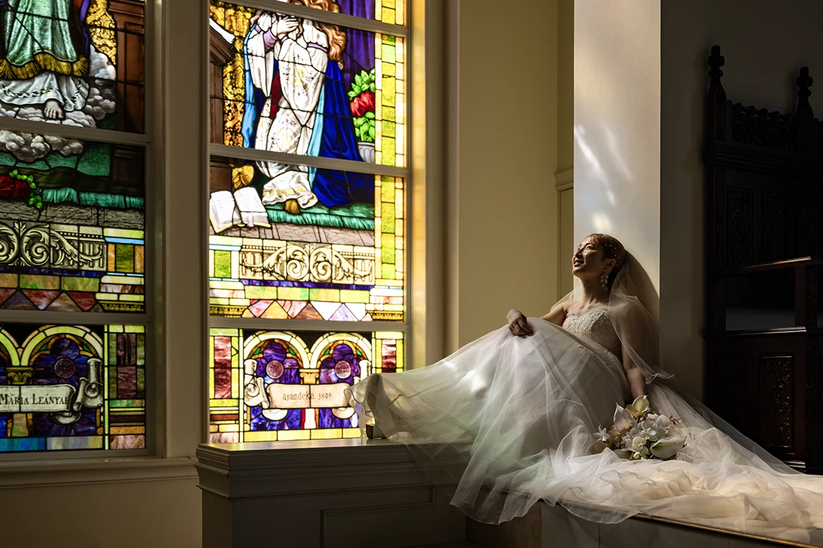 クラシックなドレスからトレンドをおさえたデザインまで、洋装・和装ともに幅広い衣装をご用意。プロのスタッフが丁寧にフィッティングを行い、おふたりらしいスタイルを一緒にコーディネートします。