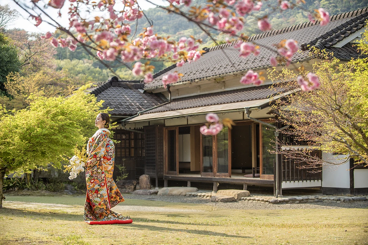 広大な自然は国定公園法に守られた名勝木曾川の川沿い。420本の桜をはじめ四季折々の風景を楽しめます。また、国の重要文化財にも指定された旧川上貞奴別荘「萬松園」での撮影も可能。他にはない特別なウェディングフォトを和洋それぞれに撮影できます。