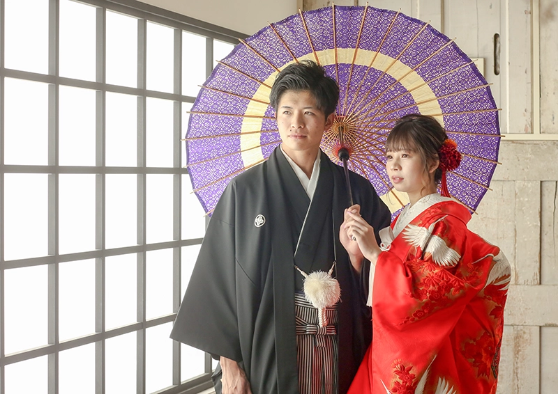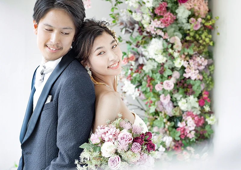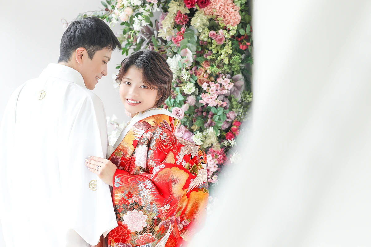 創寫舘のウェディングフォトは、洋装1着・和装1着・洋和装2着の基本3プランをもとに、おふたりの希望にあわせて自由にアレンジが可能です。衣装を増やしたり、データやアルバムなど必要な商品をセレクトしたり。欲しい分だけ、無駄なく。そんな柔軟さが、多くのカップルに選ばれています。