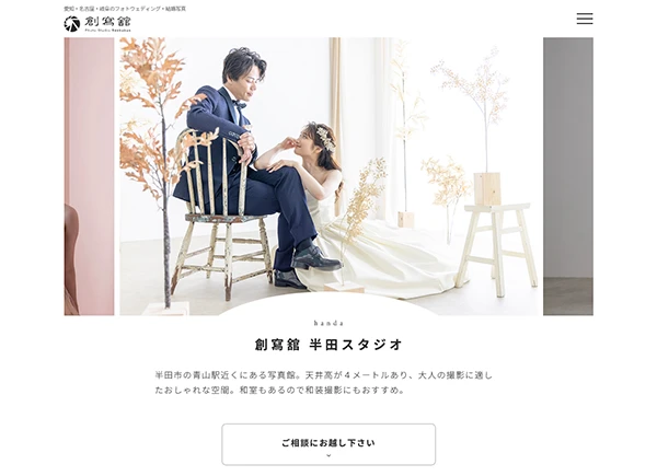 handa 半田市の青山駅近くにある写真館。天井高が4メートルあり、大人の撮影に適したおしゃれな空間。和室もあるので和装撮影にもおすすめ。 ご相談にお越し下さい ご相談にお越し下さい 撮影プラン 創寫舘のウェディングフォ … 続きを読む 半田常滑エリアのウェディングフォト(半田スタジオ)