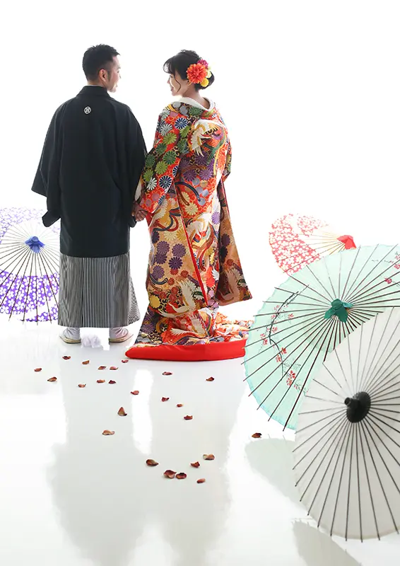 創寫舘のウェディングフォトは、洋装1着・和装1着・洋和装2着の基本3プランをもとに、おふたりの希望にあわせて自由にアレンジが可能です。衣装を増やしたり、データやアルバムなど必要な商品をセレクトしたり。欲しい分だけ、無駄なく。そんな柔軟さが、多くのカップルに選ばれています。