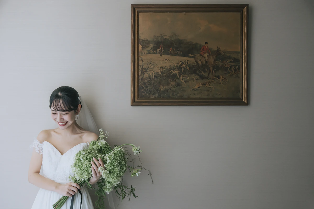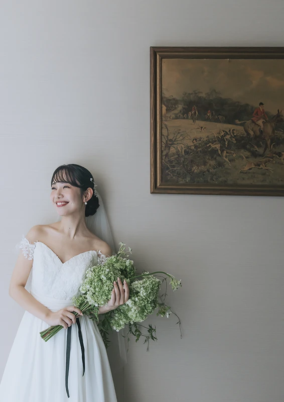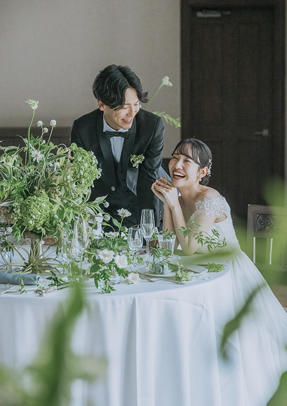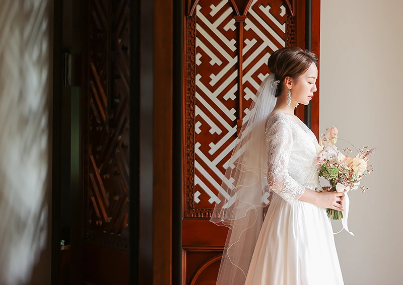 クラシックなドレスからトレンドをおさえたデザインまで、洋装・和装ともに幅広い衣装をご用意。プロのスタッフが丁寧にフィッティングを行い、おふたりらしいスタイルを一緒にコーディネートします。