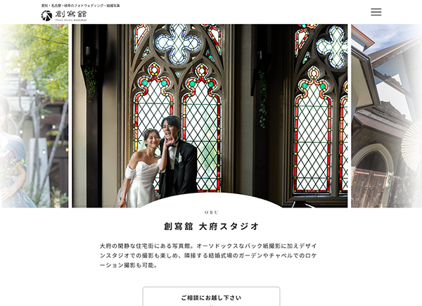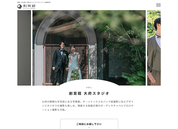 OBU 大府の閑静な住宅街にある写真館。オーソドックスなバック紙撮影に加えデザインスタジオでの撮影も楽しめ、隣接する結婚式場のガーデンやチャペルでのロケーション撮影も可能。 ご相談にお越し下さい ご相談にお越し下さい 撮 … 続きを読む 名古屋市緑区大府エリアのウェディングフォト(大府スタジオ)